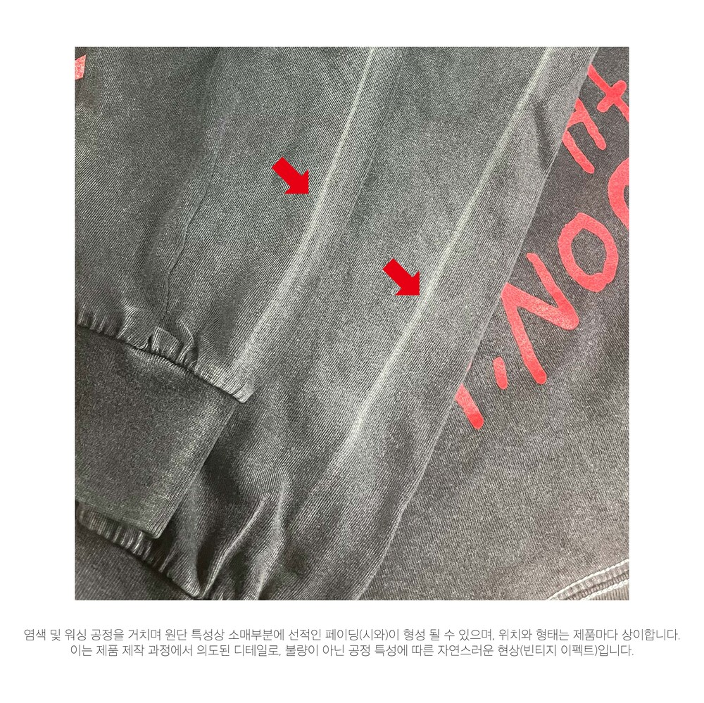 소매에는 빈티지 이펙트로 선적인 페이딩(시와) 디테일이 적용되었으며, 위치와 형태는 제품마다 상이합니다.